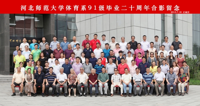 2015年7月17—20日,美丽的河北师范大学新校区充满了欢声笑语,体育系九一级(九五届)61名毕业生在阔别母校二十年之后再度聚首,忆往昔,话当下,畅谈明天!