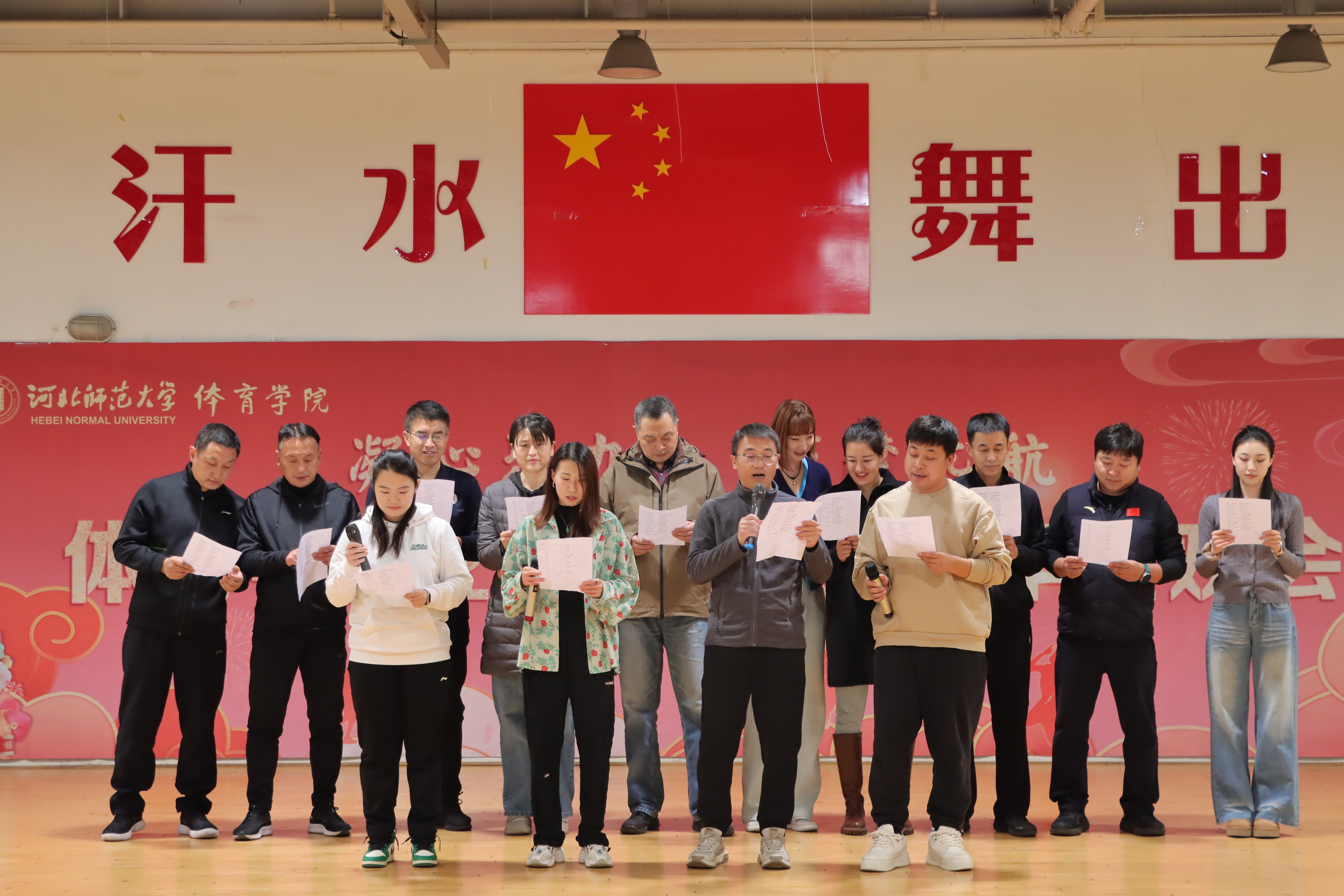 联欢过程中,皇冠体育app下载 领导班子走上舞台,向全体教职工致以节日的问候与美好的祝愿。院长马剑在致辞中细述了皇冠体育app下载 在教学、科研、竞赛等方面取得的显著成绩,这些离不开每一位教职工的辛勤付出与无私奉献;书记张晖在送上新年祝福的同时,也对新的一年寄语期望,希望大家继续秉持体育人的拼搏精神,凝心聚力、携手共进,为皇冠体育app下载 高质量发展贡献更多力量。随后,领导班子与教职工共同参与游戏、表演节目,现场氛围温馨融洽,展现了团队的凝聚力。